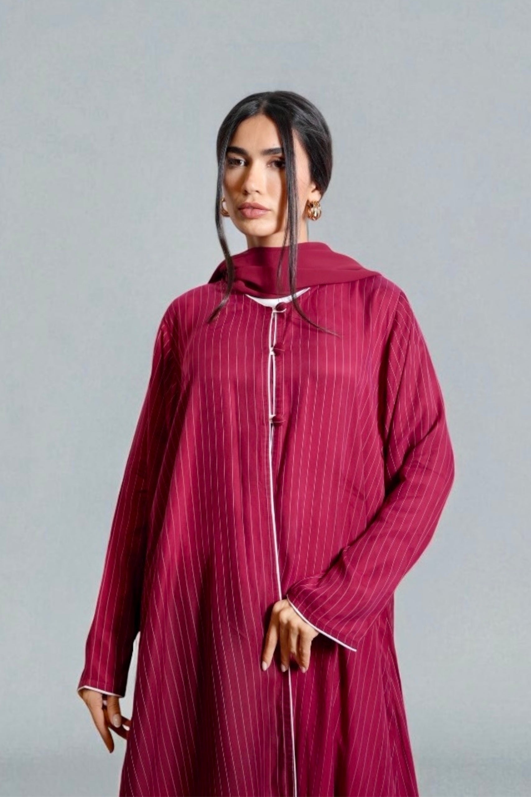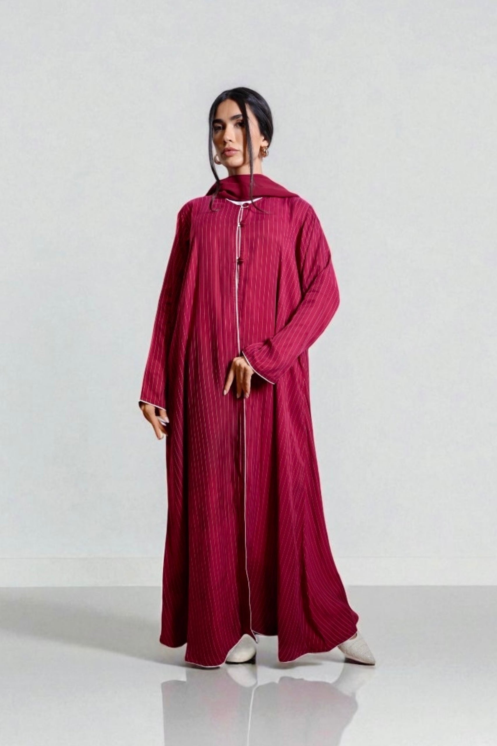 Poppy Pinstriped Abaya in Cherry Red